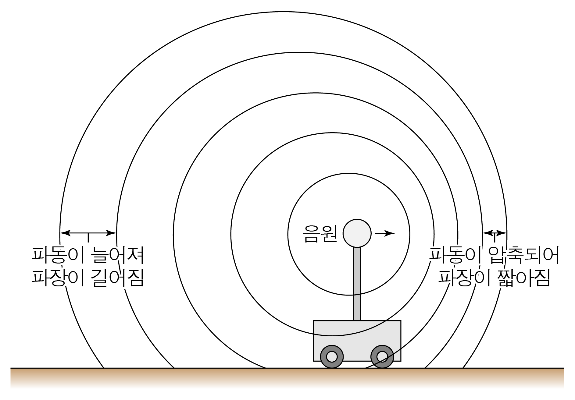 음원이 관찰자와 가까워질 때 파동이 압축되어 파장이 짧아진다.