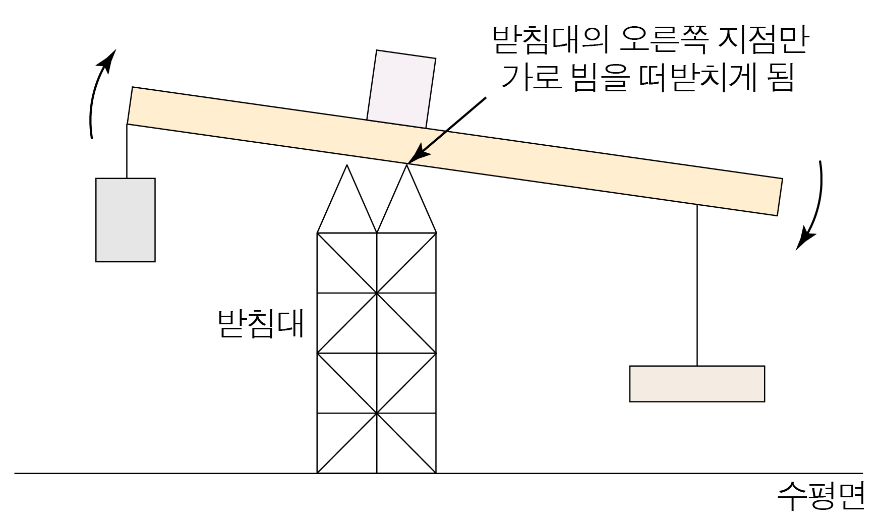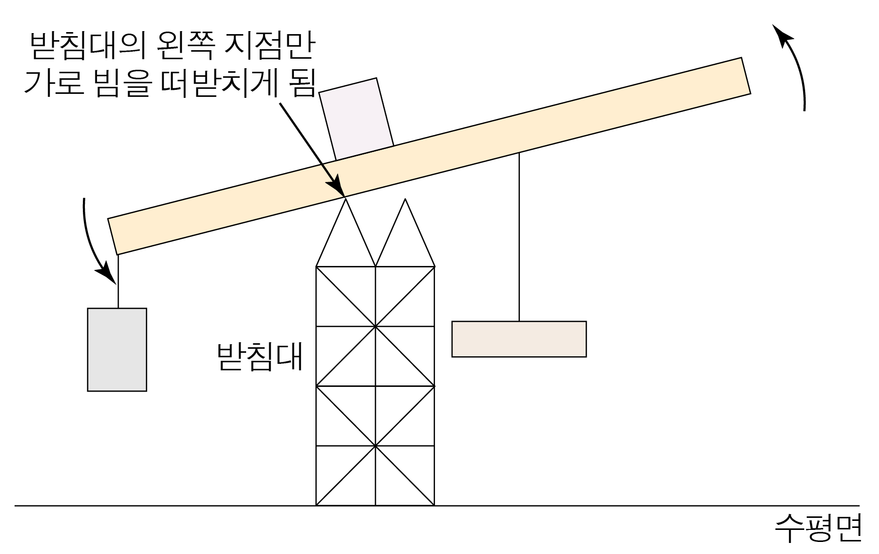 이때 아래 그림과 같이 받침대의 왼쪽 지점만 가로 빔을 떠받치게 되므로,