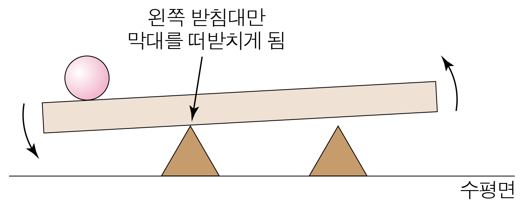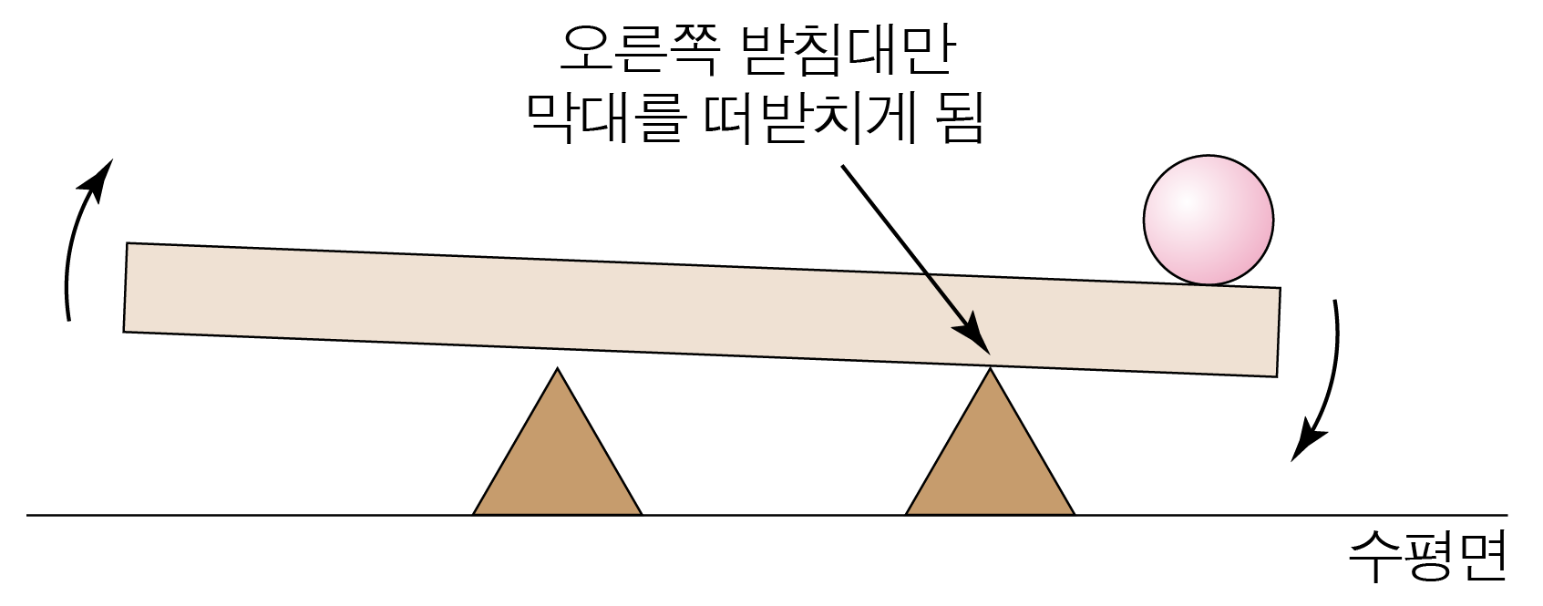 받침대가 물체를 떠받치는 힘에 의한 돌림힘: