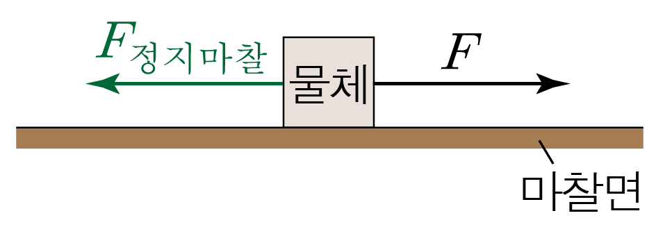 물체가 정지해 있을 때 작용하는 마찰력으로, 물체에 작용하는 외부 힘 F → \overrightarrow{F}F 의 반대 방향으로 작용한다.