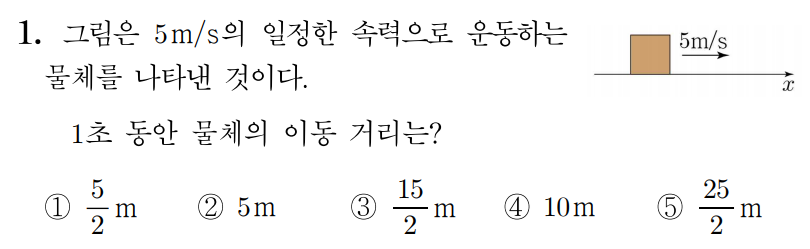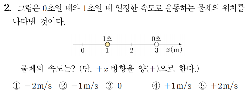 물체는 방향으로 초에 만큼 운동하므로, 방향을 양()으로 할 때, 물체의 속도는 이다.