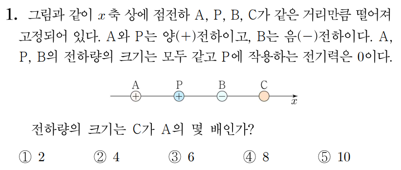 이때 P \mathrm{P}P 에 작용하는 전기력이 0 00 이므로 C \mathrm{C}C 는 P \mathrm{P}P 에 − x -x− x 방향으로 전기력을 작용함을 알 수 있다.