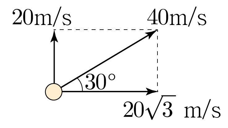 수평 방향 속력은 40m/s×cos30∘=40m/s×23=203m/s이므로