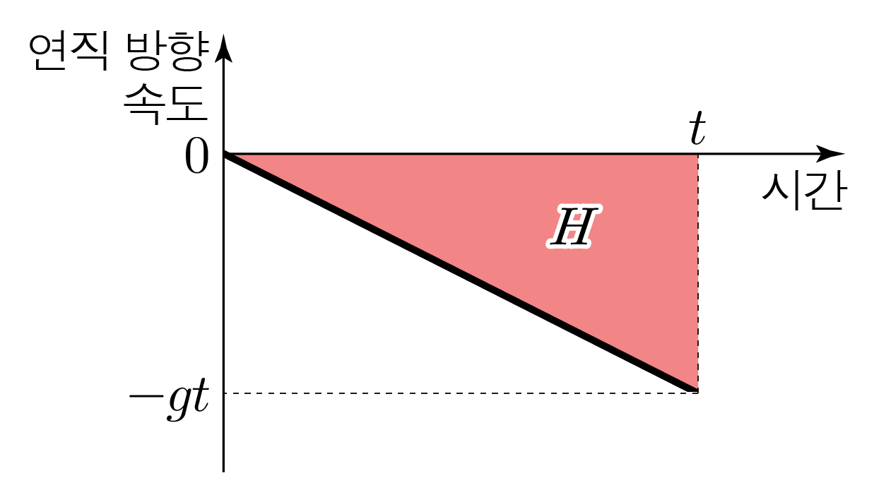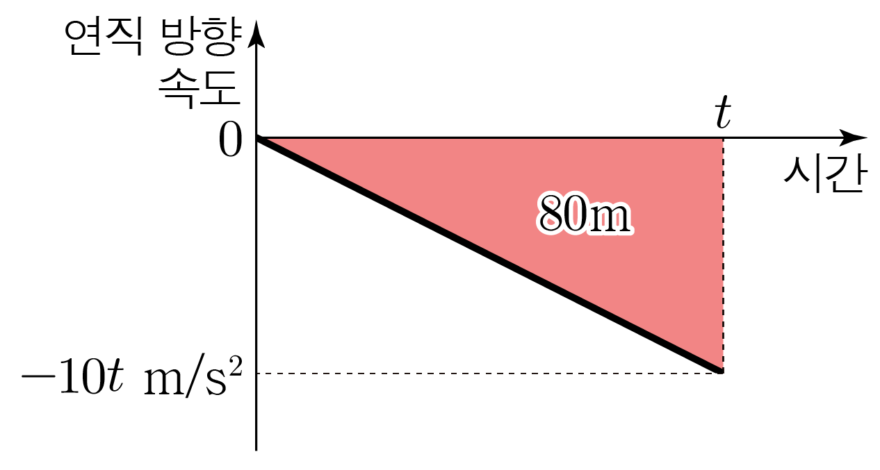 물체의 연직 방향 속도-시간 그래프를 그리면 아래 그림과 같다. (연직 윗 방향을 양(+)으로 하였다.)