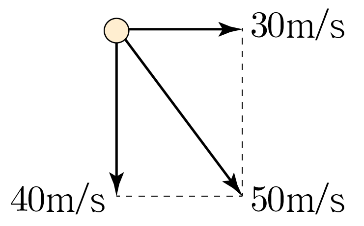 이때 아래 그림과 같이 물체는 수평 방향으로 속력 30m/s인 등속도 운동을 하므로 수평면에 도달할 때, 물체의 속력은 (40m/s)2+(30m/s)2, (10m/s)2×42+(10m/s)2×32, 10m/s×42+32, 10m/s×16+9, 10m/s×25, 10m/s×52, 10m/s×5, 50m/s이다. (O)