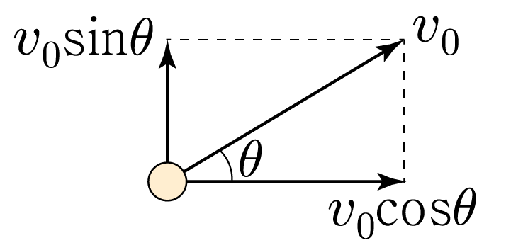 v0를 수평 방향과 연직 방향으로 분해하면 아래 그림과 같다.