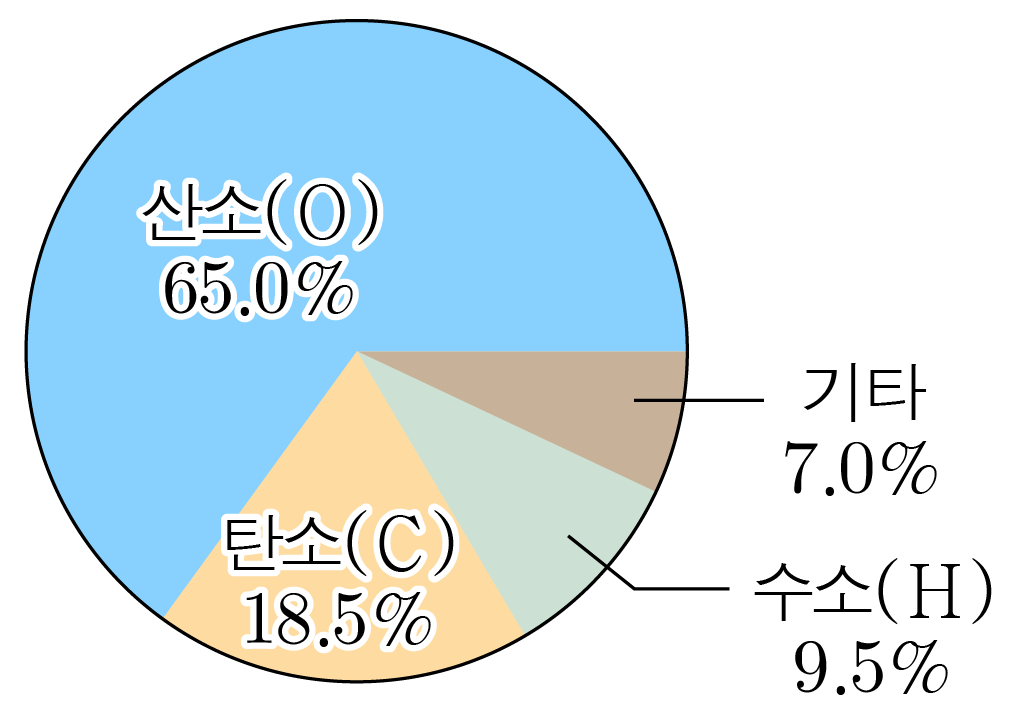 생명체의 구성 물질 중 가장 높은 비율을 차지한다.