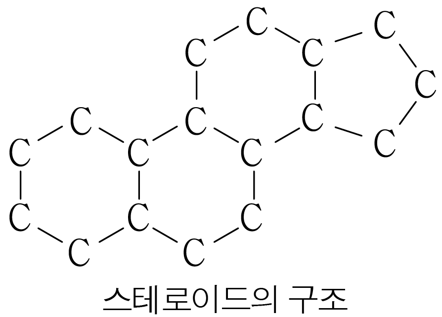 스테로이드는 지질의 한 종류에 해당하므로 (탄수화물)에 속하지 않는다. (X)