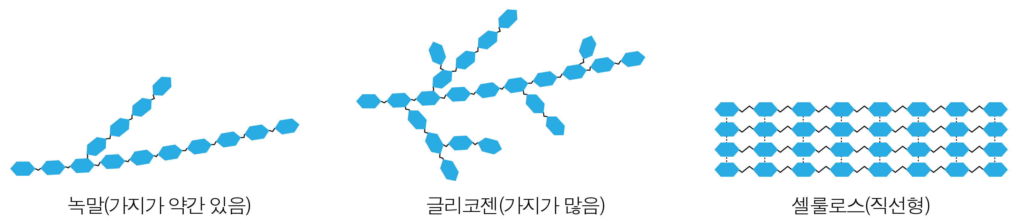 수많은 단당류가 글리코시드 결합으로 연결된 물질이다.