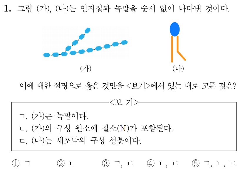 그러므로 (가)(녹말)의 구성 원소에 질소가 포함되지 않는다. (X)