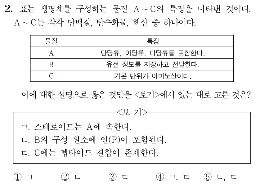 ㄷ. (단백질)는 아미노산이 펩타이드 결합으로 연결된 물질이므로 에는 펩타이드 결합이 존재한다. (O)