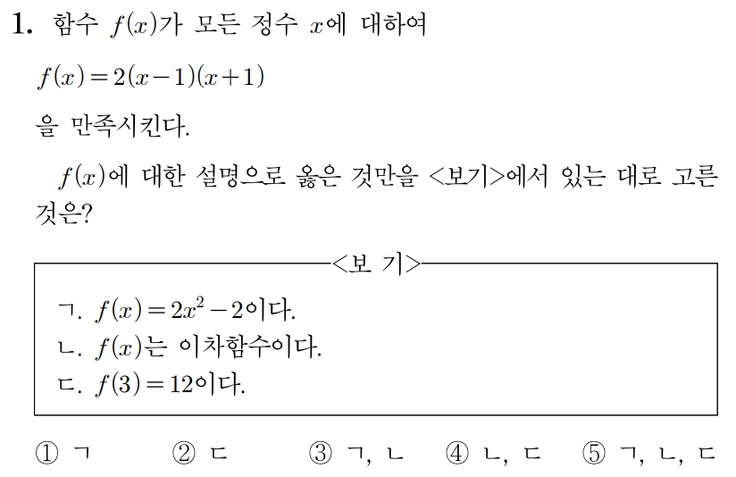 ㄱ. f(x)=2(x−1)(x+1)을 전개하면