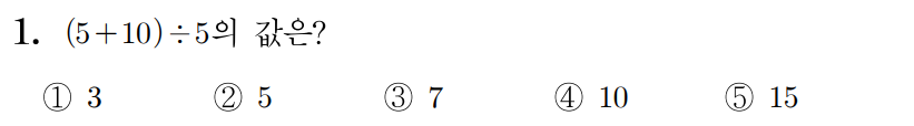 괄호 안의 수식이 가장 높은 우선 순위를 가지므로 가장 먼저 계산한다. 이때 괄호 안의 수식 에서 곱셈과 나눗셈은 덧셈과 뺄셈보다 우선 순위가 높으므로 먼저 계산한다.