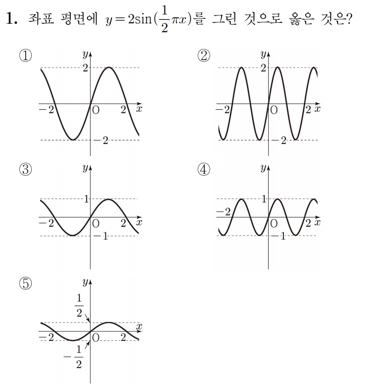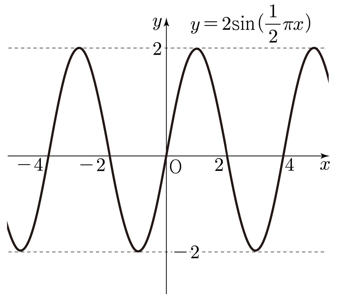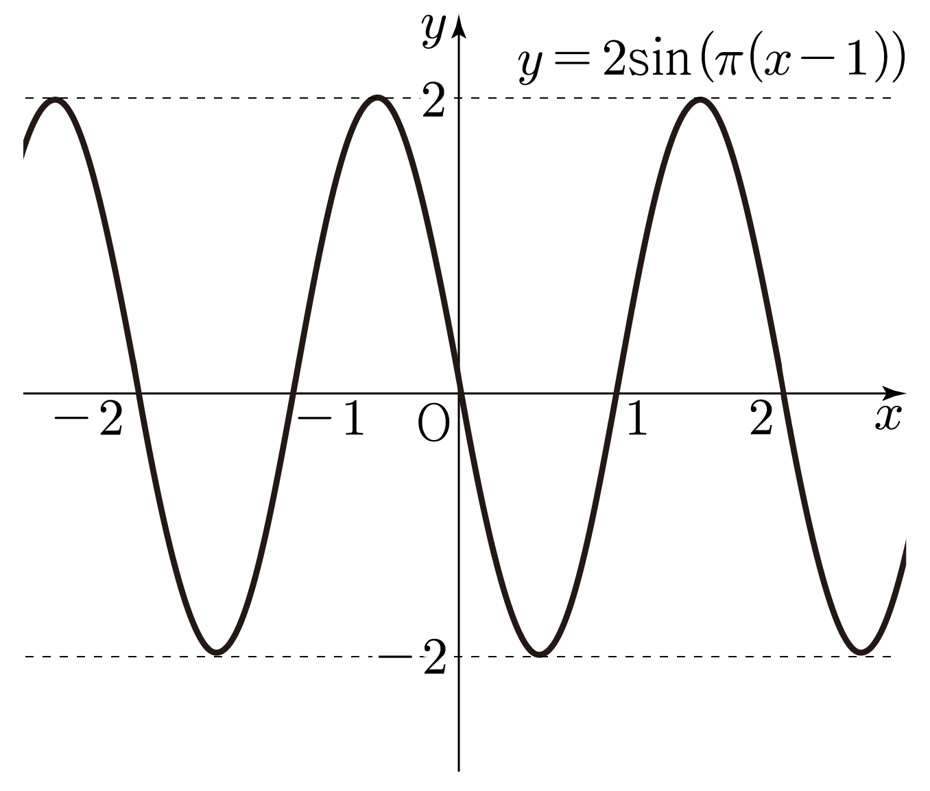 y=Asin(B(x−C))에서 A=2,B=π,C=1이므로
