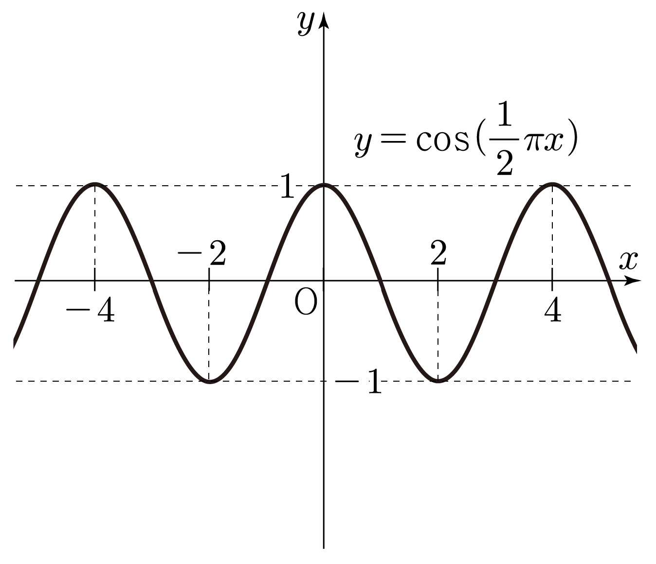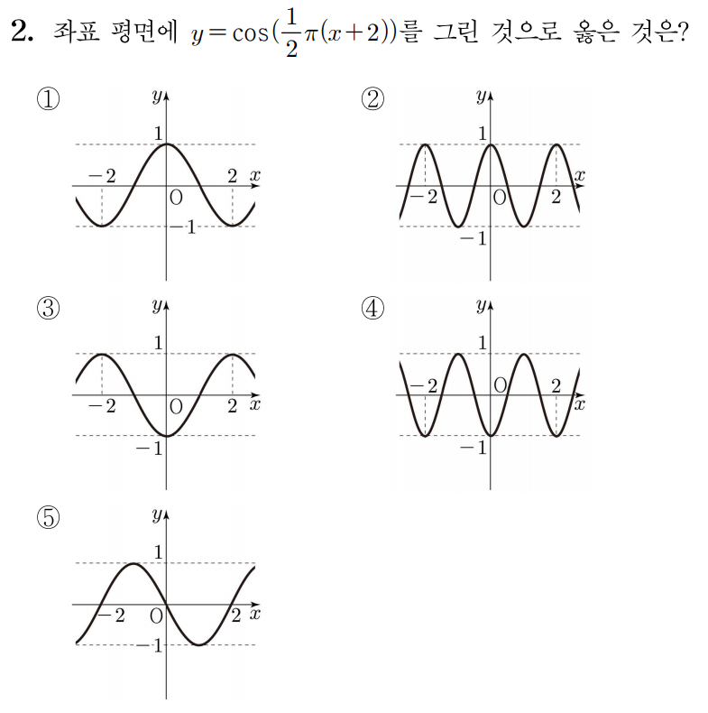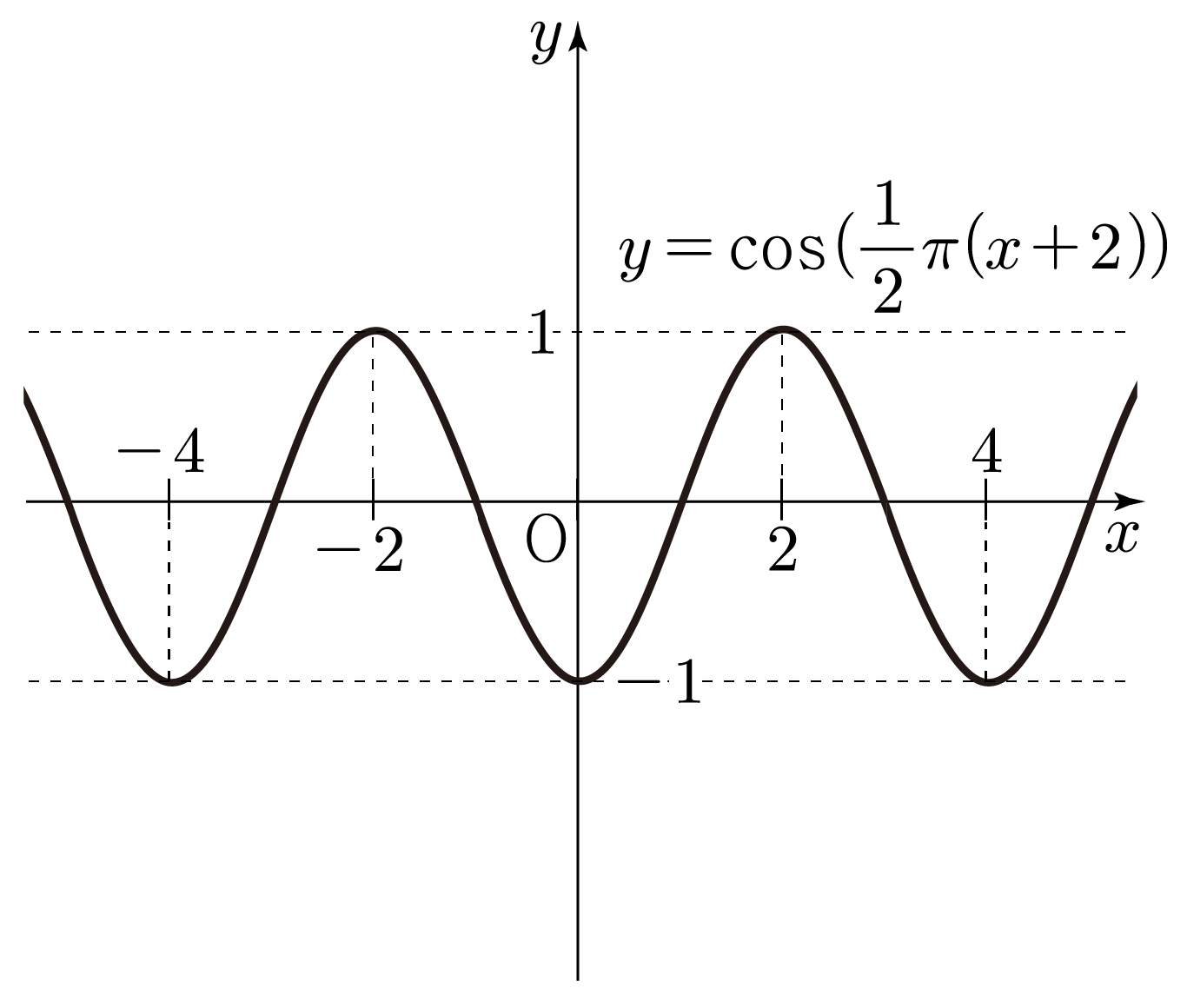 그러므로 y=cos(21π(x+2))의 그래프를 그리면 아래와 같다.
