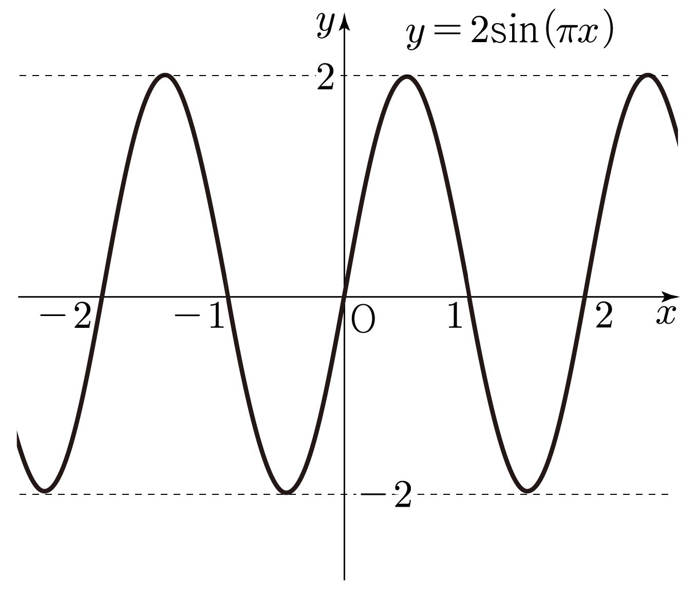 따라서 y=2sin(π(x−1))의 그래프를 그리면 아래와 같다.