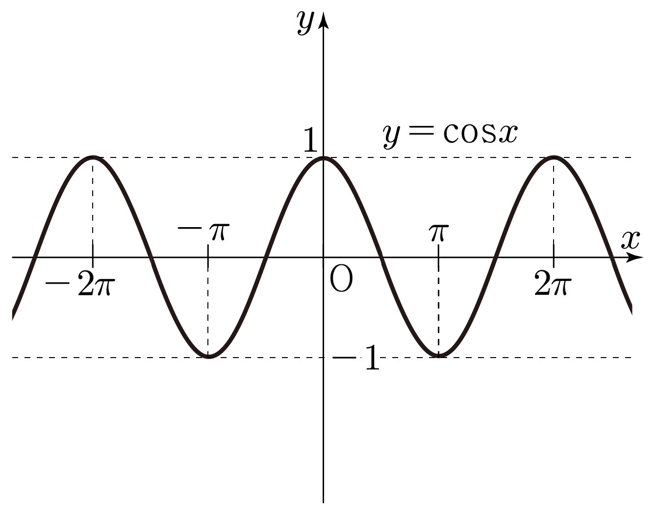 - y는 최댓값 1과 최솟값 −1을 갖는다.