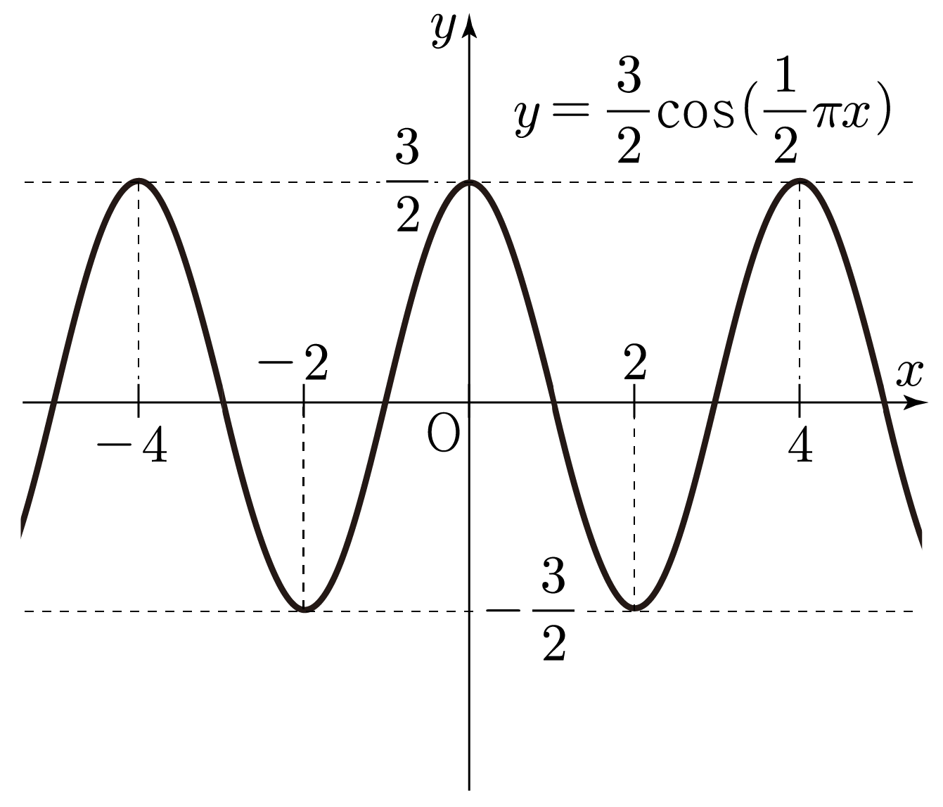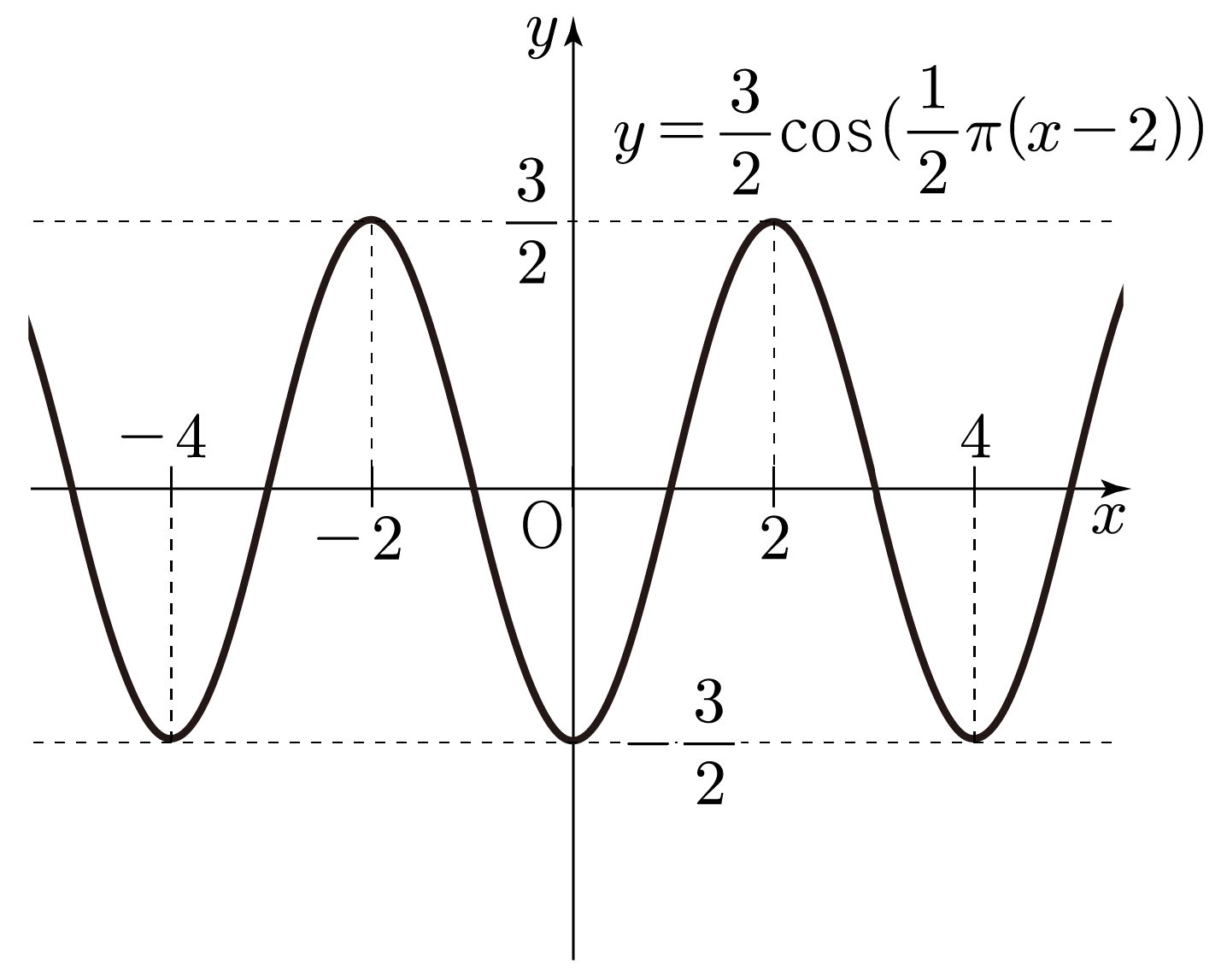 따라서 y=23cos(21π(x−2))의 그래프를 그리면 아래와 같다.