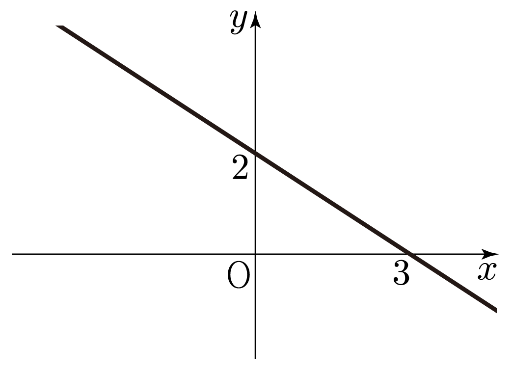 아래 그림과 같은 그래프가 있을 때, x 절편은 (3,0), y 절편은 (0,2)이다.