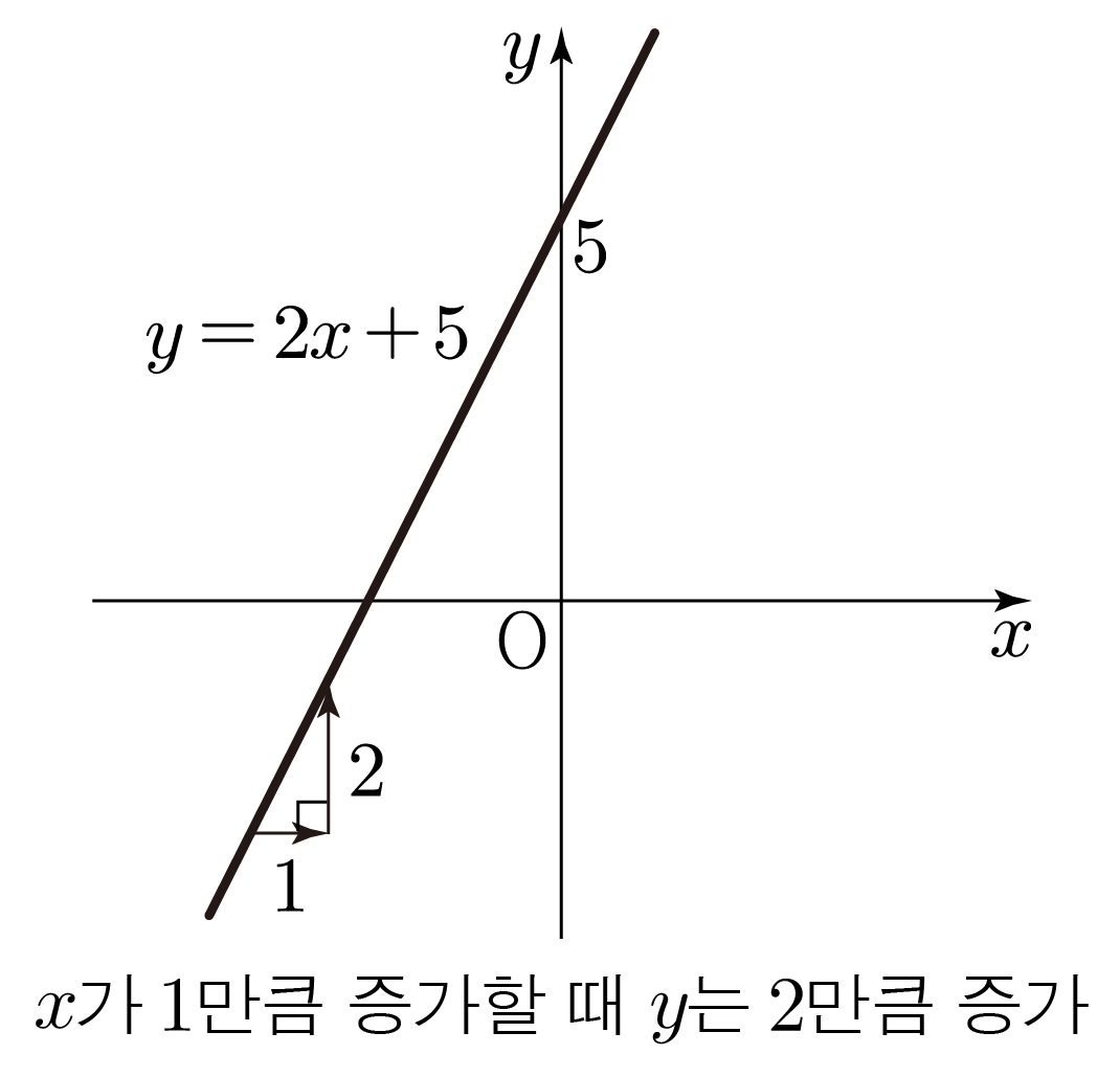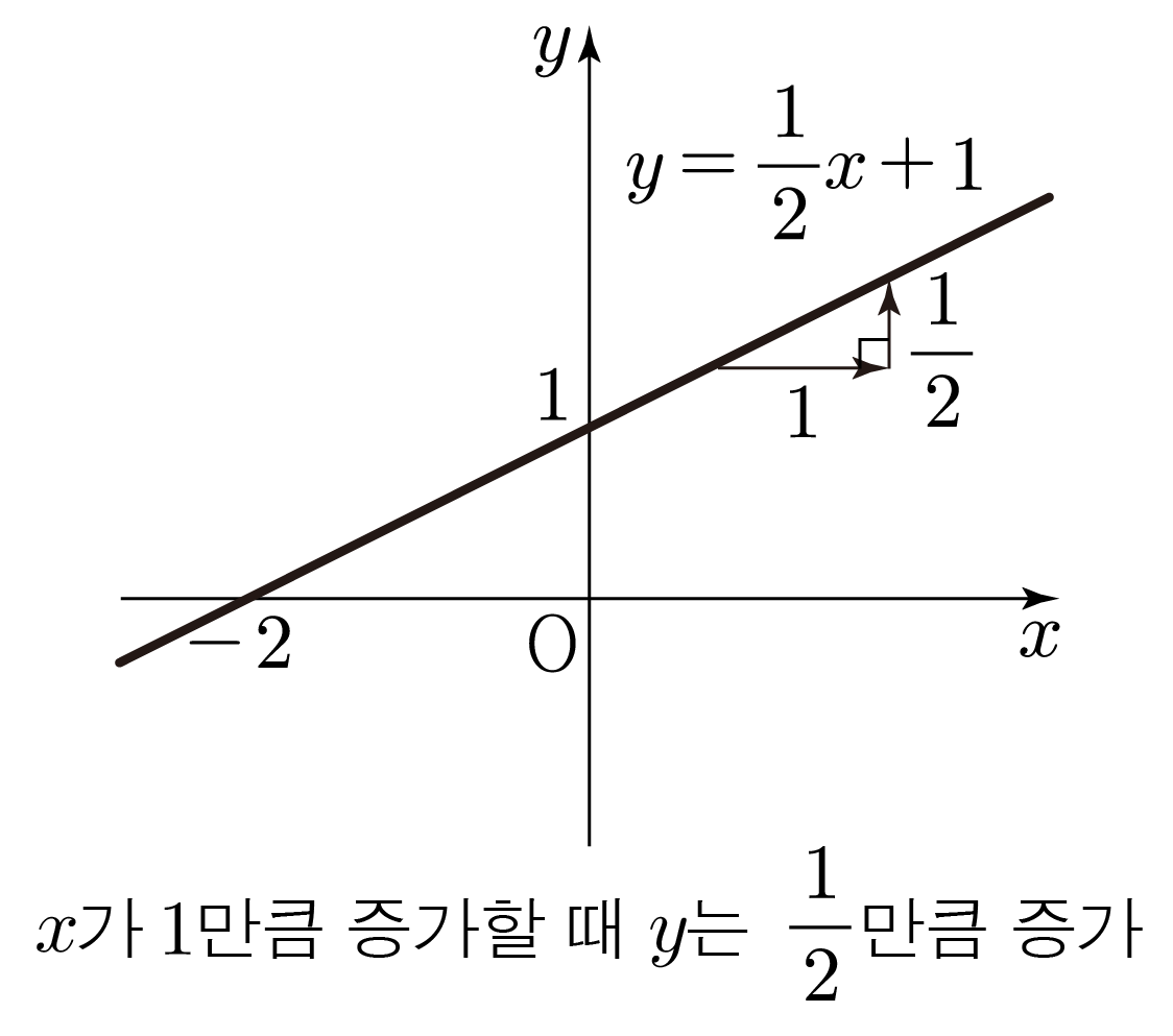 따라서 x가 1만큼 증가할 때 y는 2만큼 증가한다.