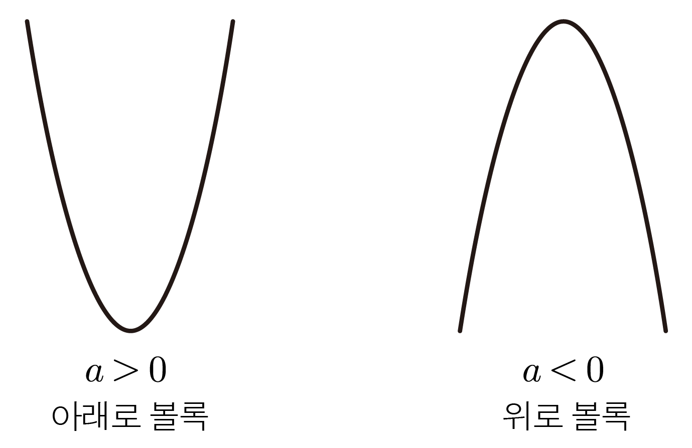 a<0인 경우 ∩와 같이 위로 볼록한 그래프 개형(대략적인 모양)을 갖는다.