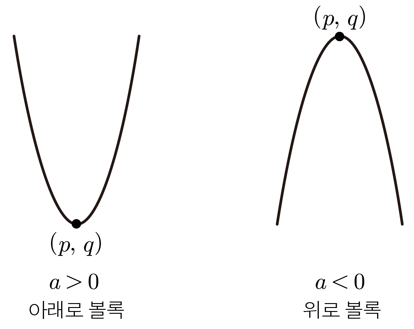 y=a(x−p)2+q인 이차함수 식에서 꼭짓점의 좌표는 (p,q)이다.