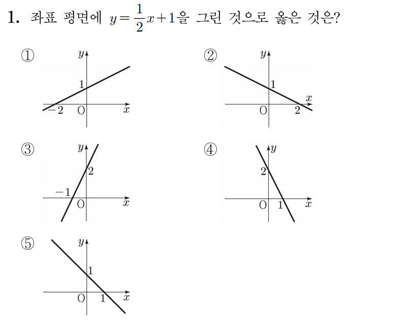 일차함수의 y 절편을 구한 후, 기울기를 통해 직선을 그린다.