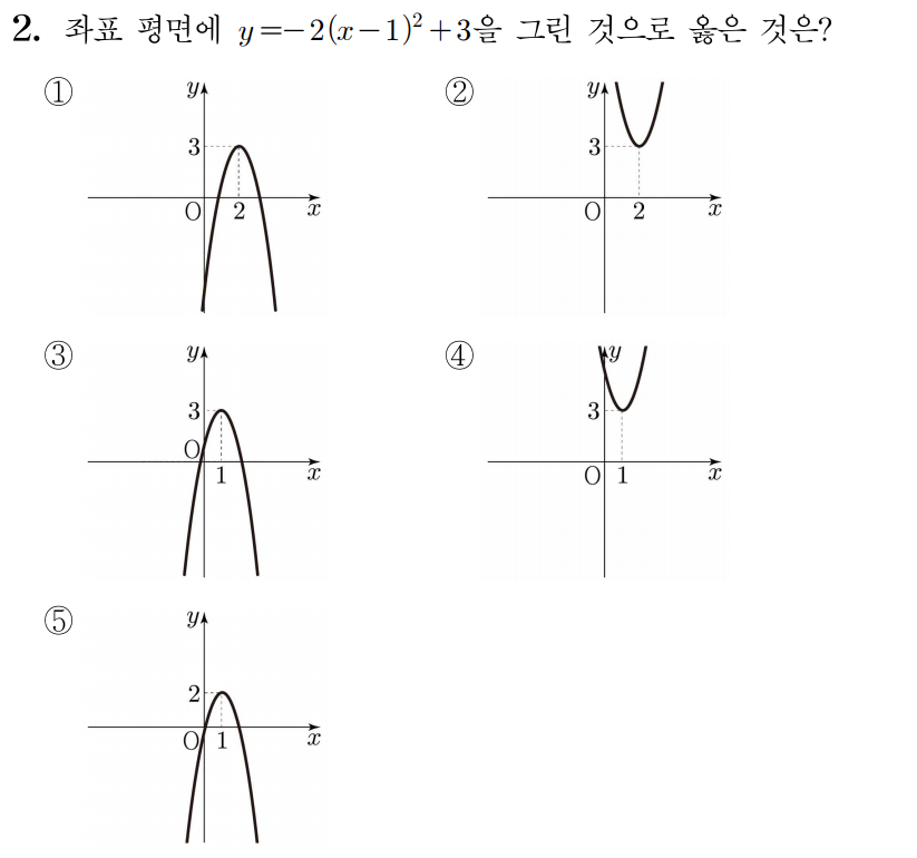 y=a(x−p)2+q에서 a=−2,p=1,q=3이다.