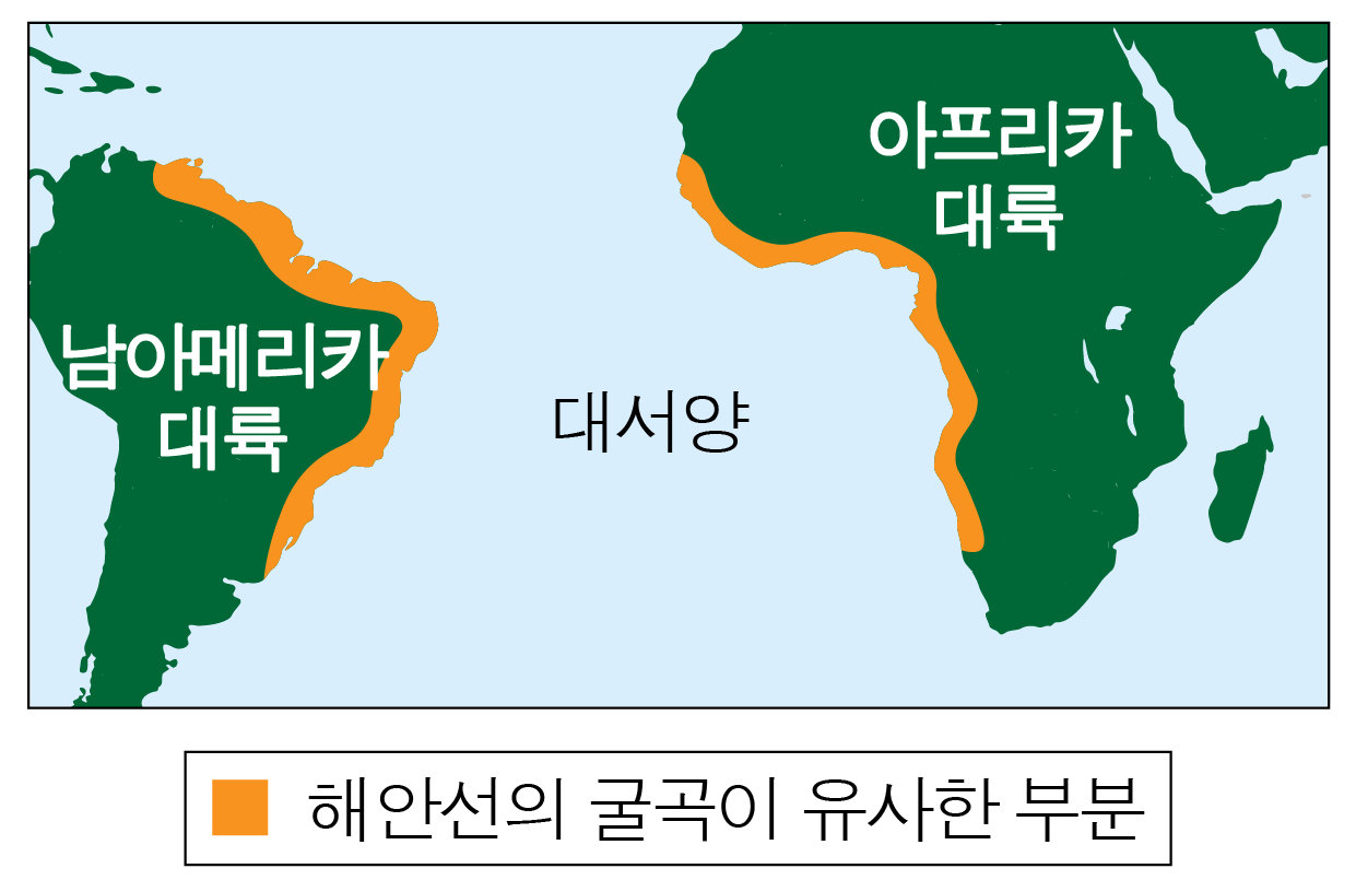 - 대서양 양쪽 대륙 해안선 굴곡의 유사성