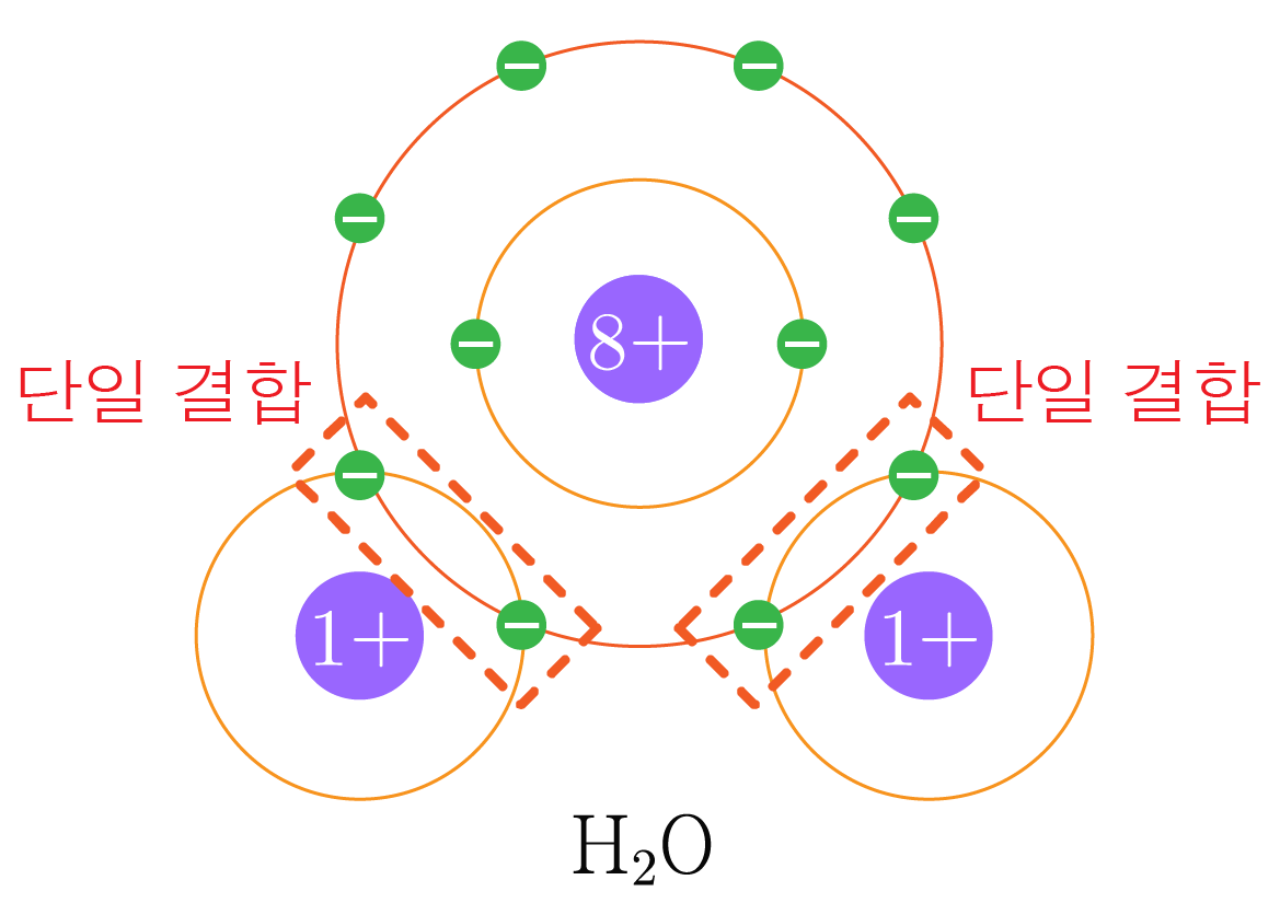 두 원자(와 ) 사이 개의 전자쌍을 공유하고 있으므로 단일 결합에 해당한다.