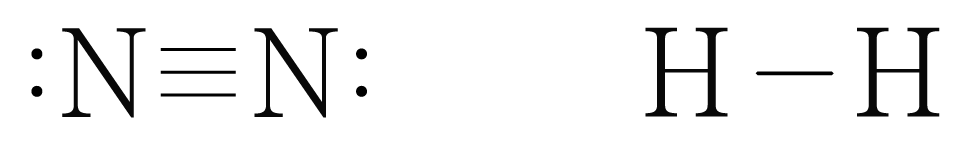 | 결합 | $N\equiv N$ | $N=N$ | $N-N$ | $N-H$ | $H-H$ |