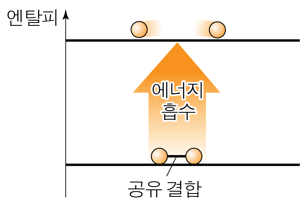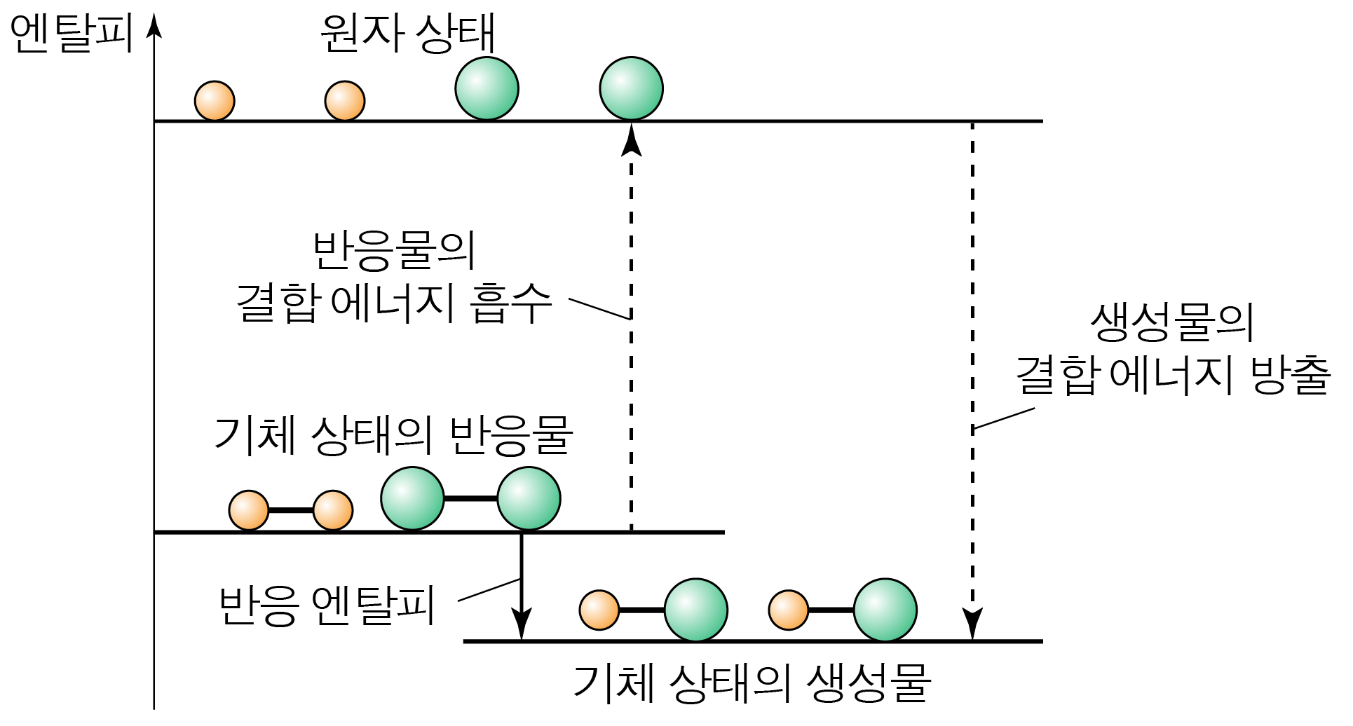 이때 반응물의 결합을 끊는 과정에서 반응물의 결합 에너지를 흡수하고,