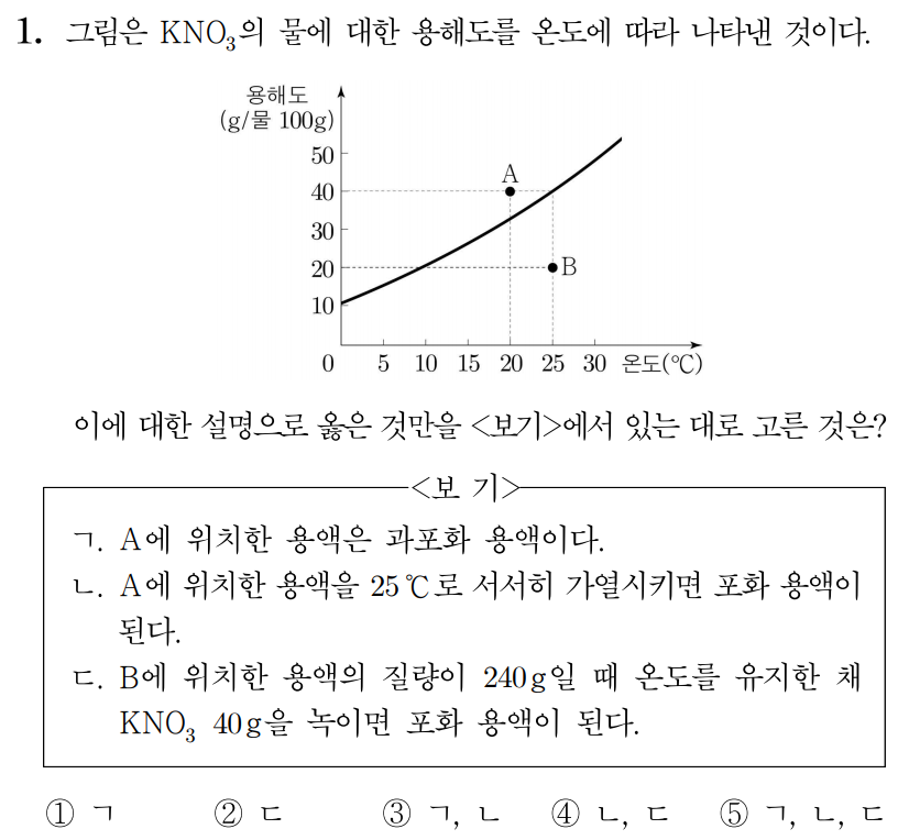 ㄴ. 에 위치한 용액을 로 서서히 가열시키면 용질이 용해도만큼 녹아 있는 포화 용액이 된다. (O)