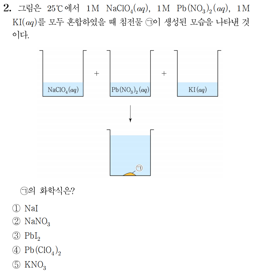 그림과 같이 에서 의 와 의 를 섞었을 때 침전물이 형성되는지 확인해보자.