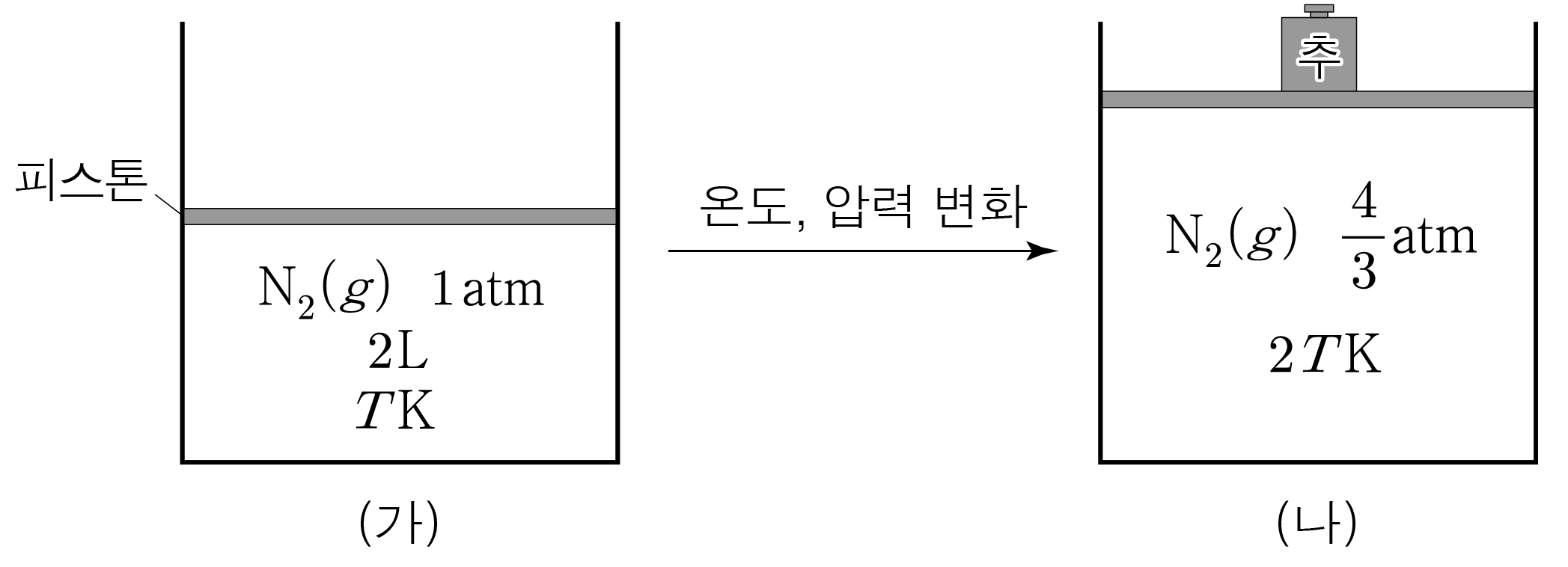 ㄱ. (가)에서 이상 기체 법칙을 적용하면