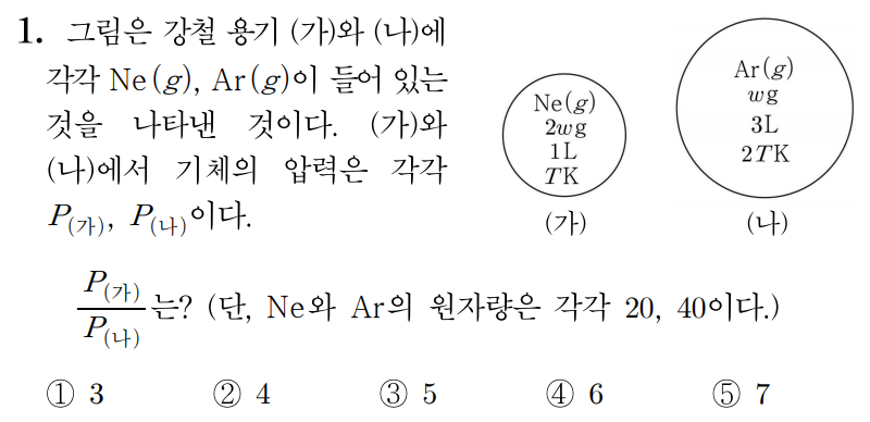Ne의 원자량은 20이므로 실린더 속에 들어 있는 Ne의 몰 수는 20g/mol30g=23mol이다.