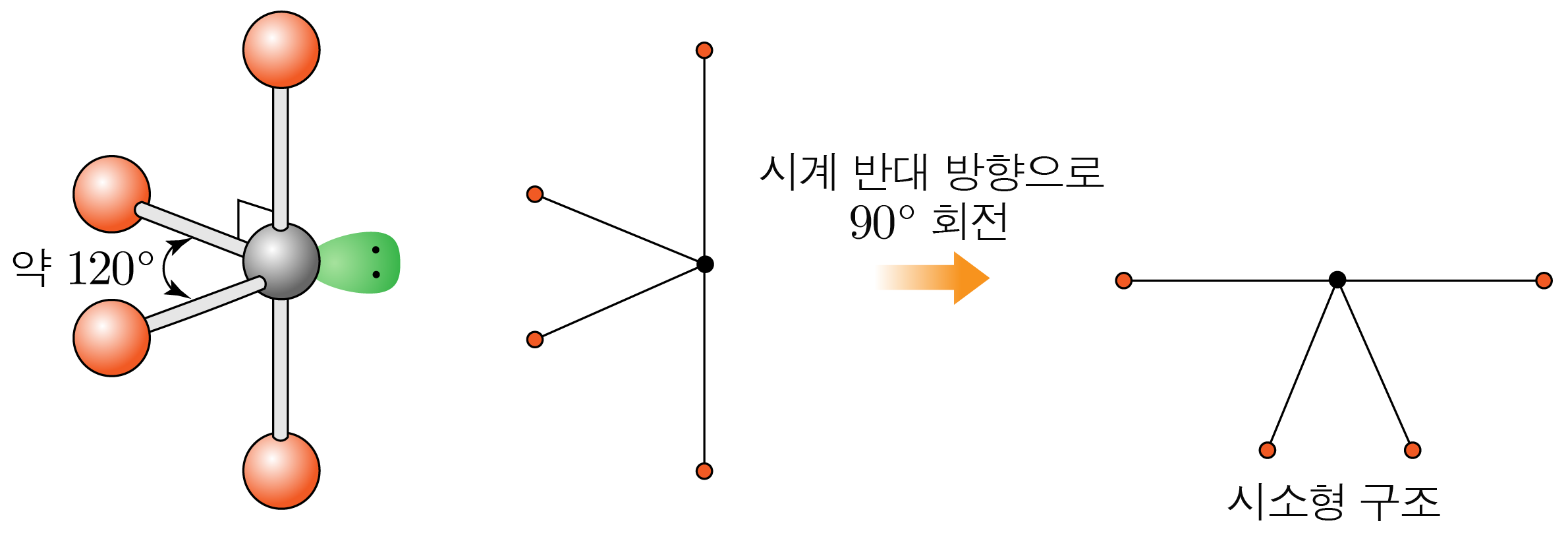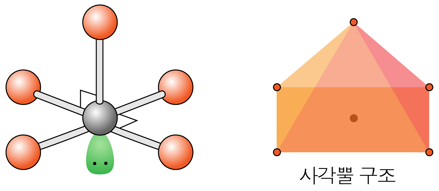 - 결합수가 5개, 비공유 전자쌍이 1개일 때: