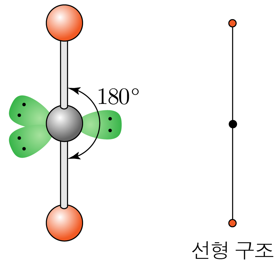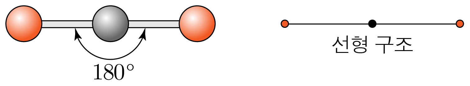 - 결합수가 2개, 비공유 전자쌍이 0개일 때: