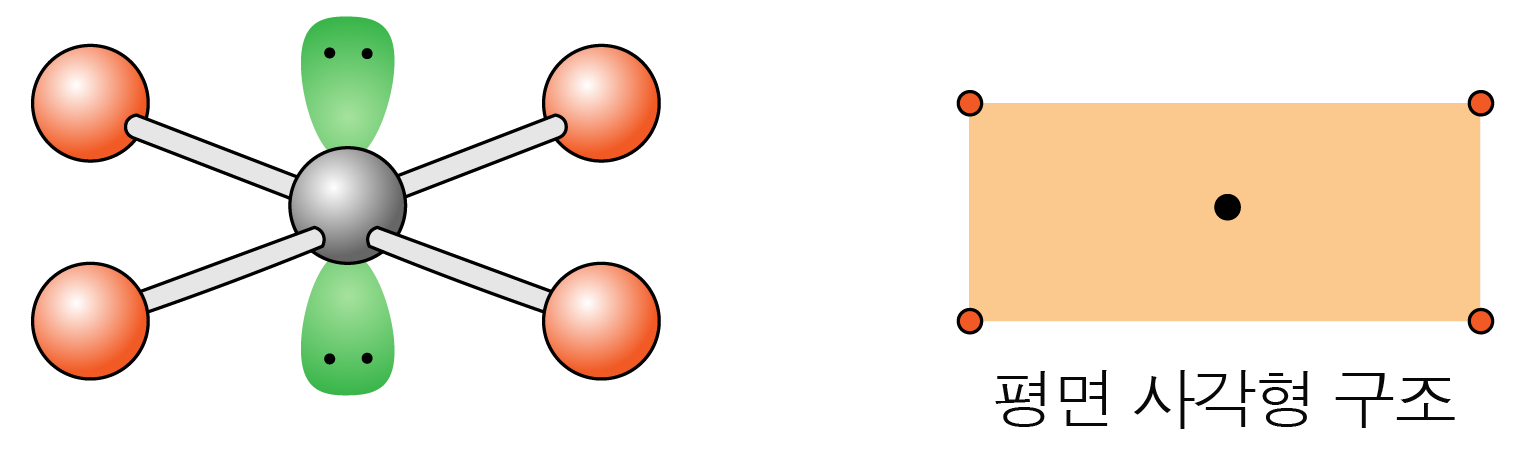 - 결합수가 4개, 비공유 전자쌍이 2개일 때:
