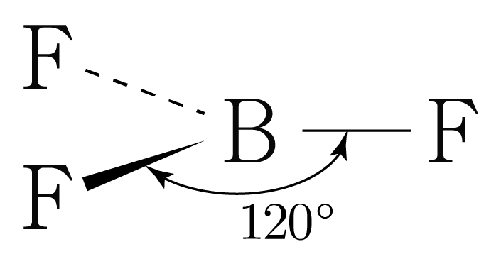 따라서 BF3의 결합각은 120∘이고, 평면 삼각형 구조이다.