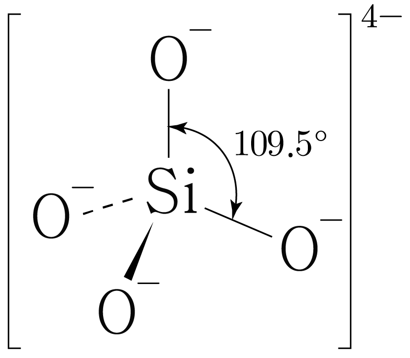 따라서 SiO44−의 결합각은 109.5∘이고, 사면체 구조이다.