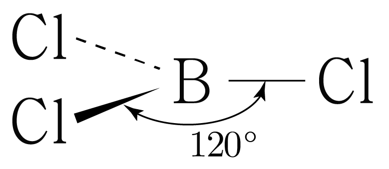 따라서 BCl3의 결합각은 120∘이고, 평면 삼각형 구조이다.