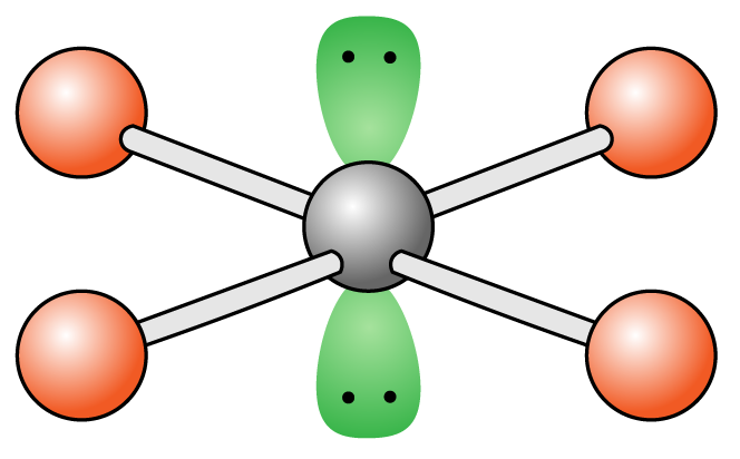 전자는 음(−)전하를 띠기 때문에 비공유 전자쌍과 결합 전자쌍은 서로 밀어내며,