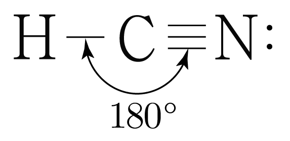 따라서 HCN의 결합각은 180∘이고, 선형 구조이다.