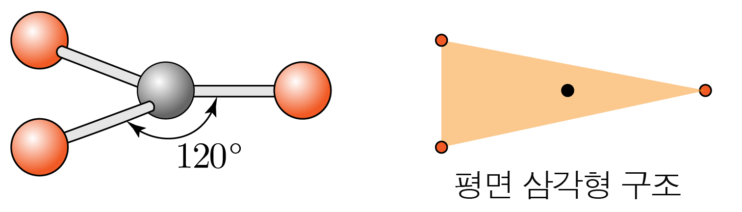 결합각은 120∘이고, 평면 삼각형 구조이다.