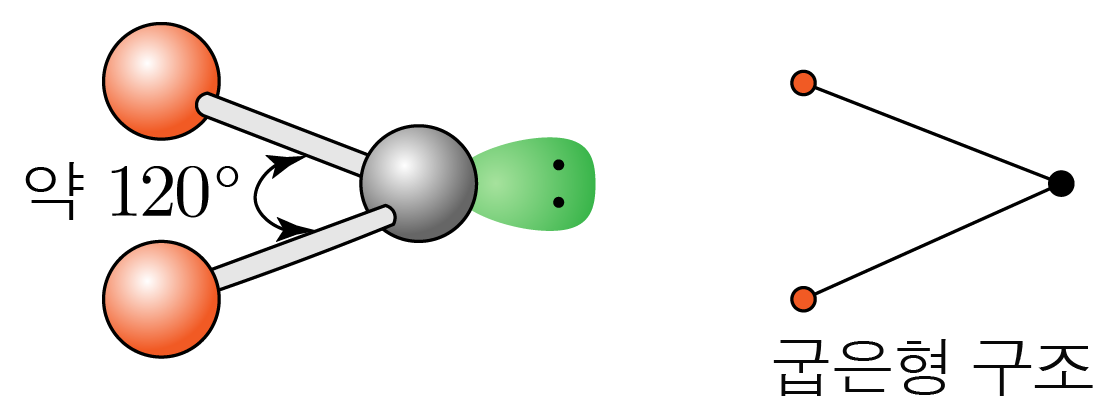 - 결합수가 2개, 비공유 전자쌍이 1개일 때: